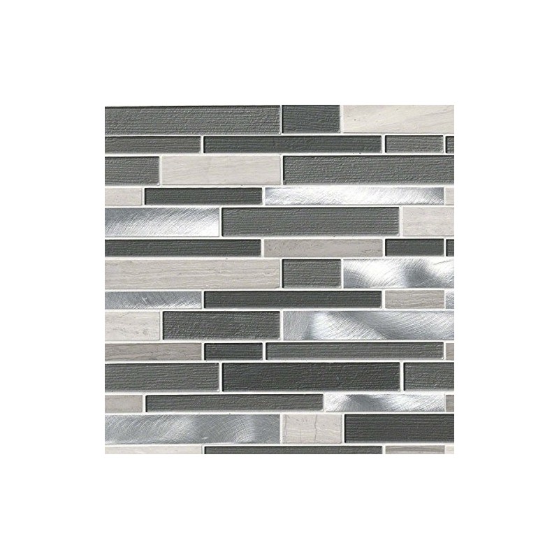Urban Loft Interlocking Pattern 4mm Mosaic Tile. Sleek, modern, and dramatic, Urban Loft Interlocking stone metal glass blend tiles reflect light and a sophisticated elegance throughout a space. Use these tiles to create show-stopping kitchen backsplashes, add character to a shower or bath, or bring life to an entry way. In addition, they can be used for countertops in residential properties.