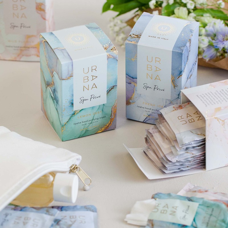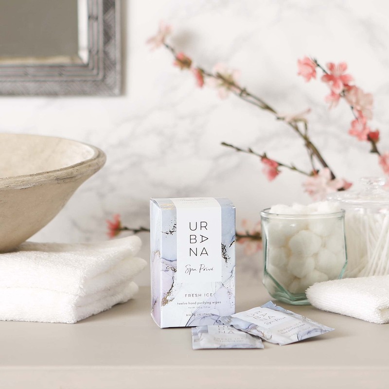 Urbana Spa Prive Collection Individual Hand Purifying Wipes, 12 Pack, 3.5 oz, Fresh Ice,6280