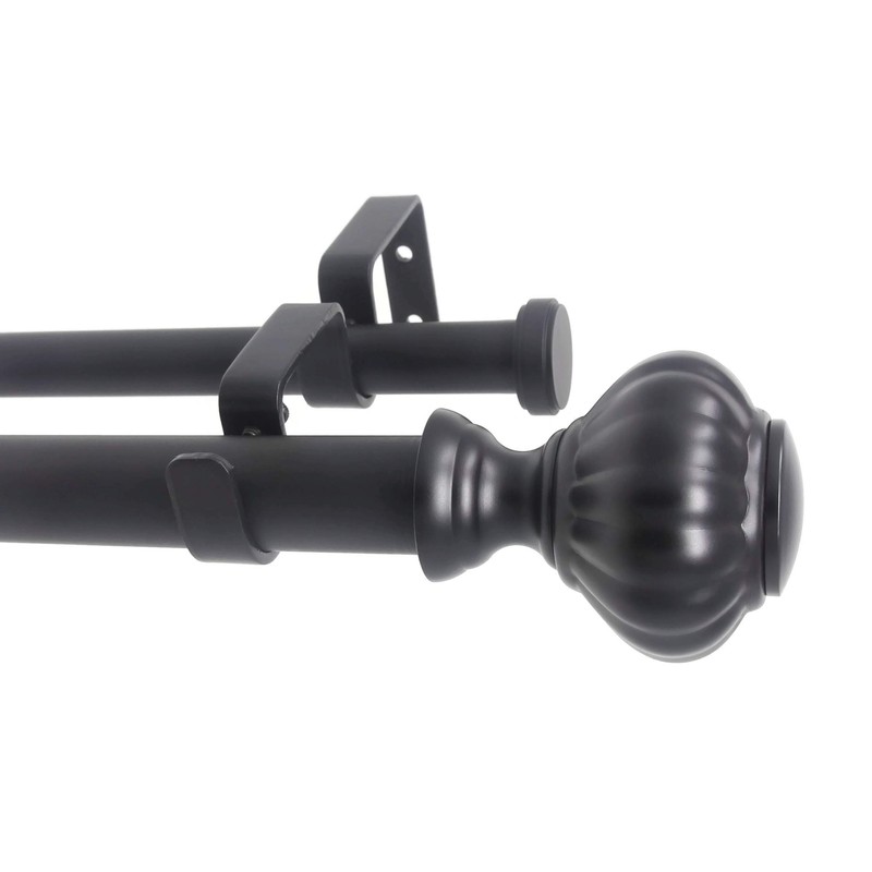 Urbanest Door Knob Flat Button 1" 3/4" Double Drapery Curtain Window Rod Set - 84" to 120", Black