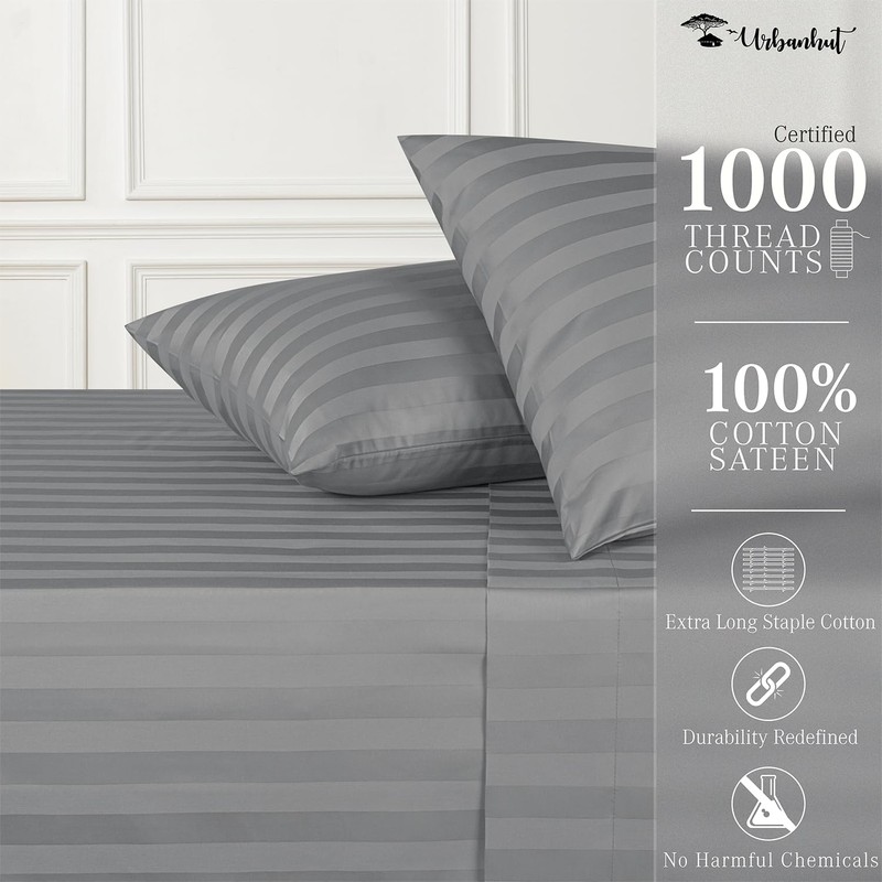 - Experience Luxury Cotton: Immerse yourself in luxury with our 100% pure cotton Striped sheets, boasting 1000 threads per square inch. The sateen weave and long-staple cotton yarns deliver the ideal blend of breathability and durability, perfect for night sweats and ensuring a silky-soft feel akin to 5-star hotel bedding.