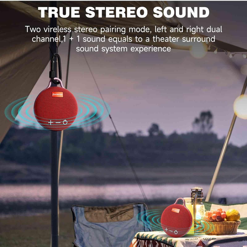 UrbanX Audience Series IPX7 Bluetooth Waterproof Speaker with Clip, 20H Playtime, Compact Speaker with Big Sound, Punchy Bass, Wireless for LG W31 & Beach, Pool, Boat, Biking Red 1 Pack