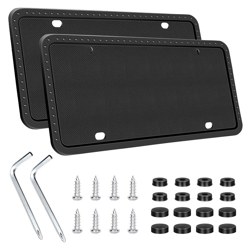 - Rust-proof. Rattle-proof. Weather-proof Car Accessory. - Made from industrial-grade silicone, this License plate frame have soft flexible surface that prevents any scratches or rattling sounds. And this License plate frame will not rust even if it is exposed all year round to wind and rain.