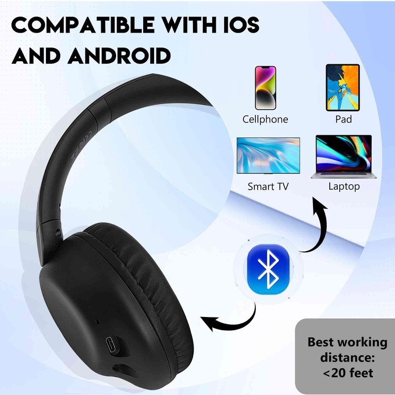 UrbanX UX991 Wireless Bluetooth Stereo Earphones High Resolution Audio Deep Bass Superior Comfort Over The Ear Headphones with Mic for Oppo Reno6 Pro 5G (Snapdragon) Phone Call Support