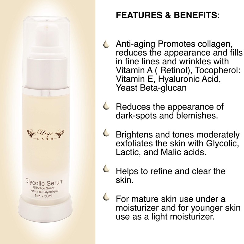Urge Lash - Glycolic Acid AHA Blend Serum Promotes the removal of blemishes and dark spots, acne scars promotes vibrant smooth glowing skin, Exfoliant for Night or Day.