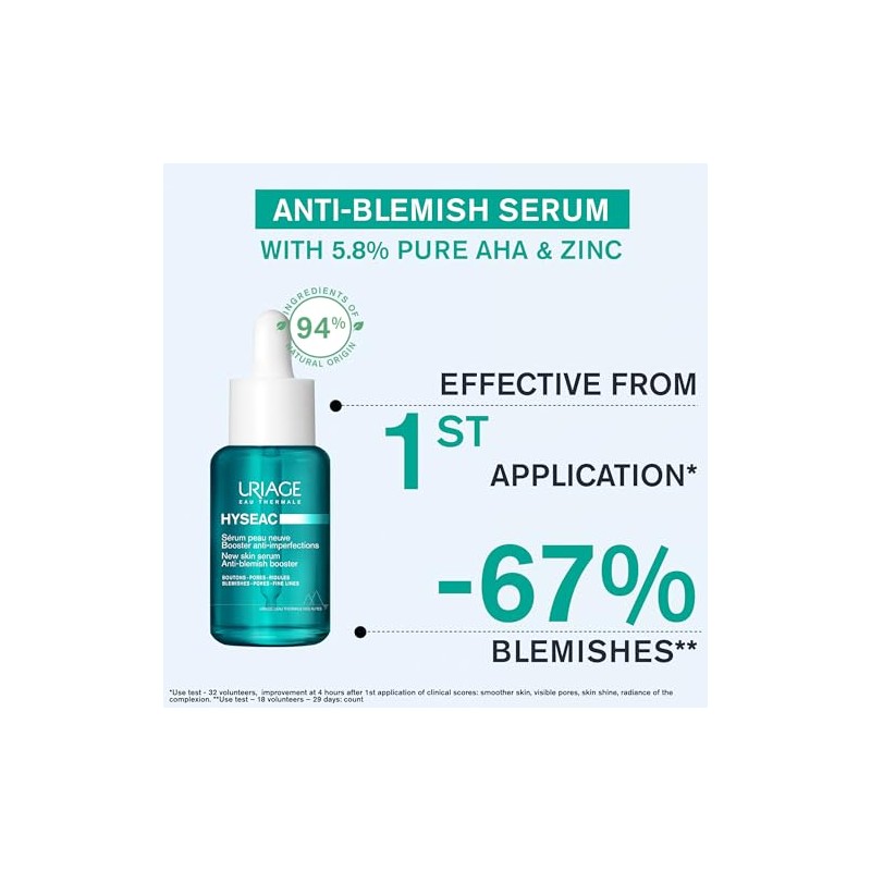 🌟 ⭐ Uriage Hyseac Sérum renovador 5,8% AHA Zinc 30ml - Serum exfoliante piel nueva, anti imperfecciones para brotes adultos piel grasa y normal - refina y minimiza los poros ⭐ 🌟