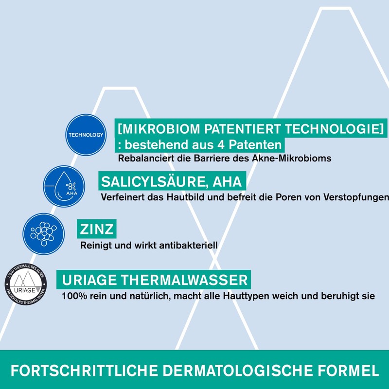 - PATENTED FORMULA: Microbiome technology to restore the acne microbiome barrier. Contains AHA and salicylic acid to refine the skin structure and cleanse the pores as well as zinc to regulate excess sebum. Uriage thermal water deeply moisturizes and soothes.
