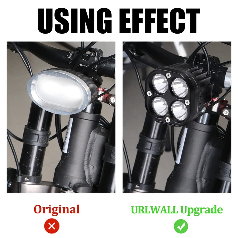 • Bright Farther Wider View - Small square of LED chips design, Headlight spotlight,6000K bright white light beam. Compared with the original headlights, the upgraded design has a farther and broader field of view, make your nighttime riding even better and safer.