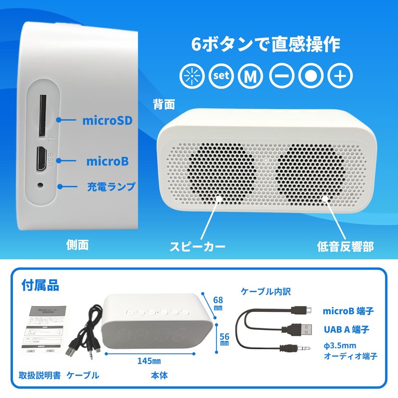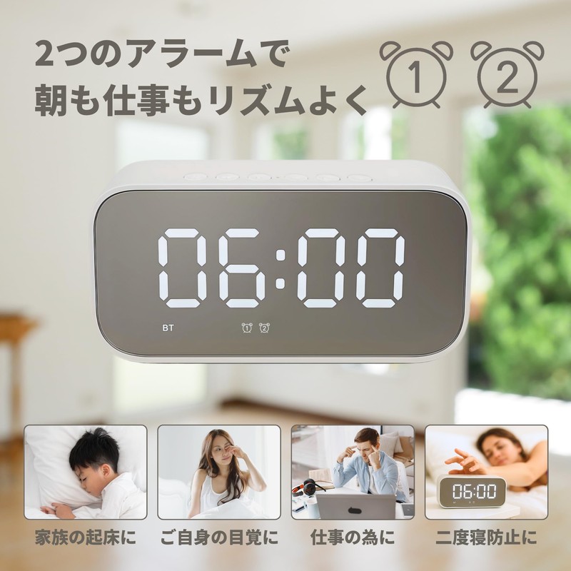 URMORE White Bluetooth Speaker Music Playback Compact Multifunction LED Display with Digital Clock Bedside Desk