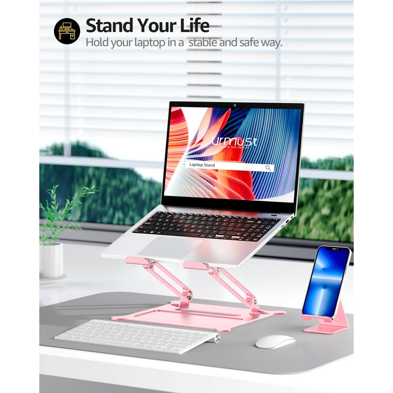 - Protective Stable and Foldable: Urmust Adjustable Laptop Stand is sturdy to support up to 8.8 lbs(4kg); the rubber on the holder's hands sticks tightly, ensure your laptop stable on the stand and prevent any scratches.Foldable to save space for easy storage and designed handle hole for easy carrying.