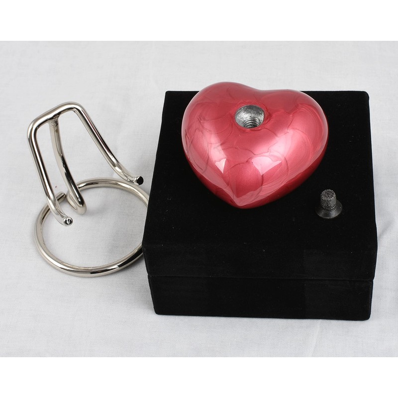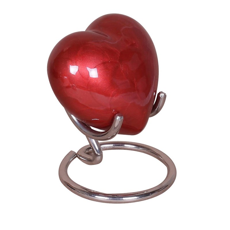 - Our heart shaped small urn comes with a matching silver stand and velvet gift box. Available at an affordable price for a dignified memorial.