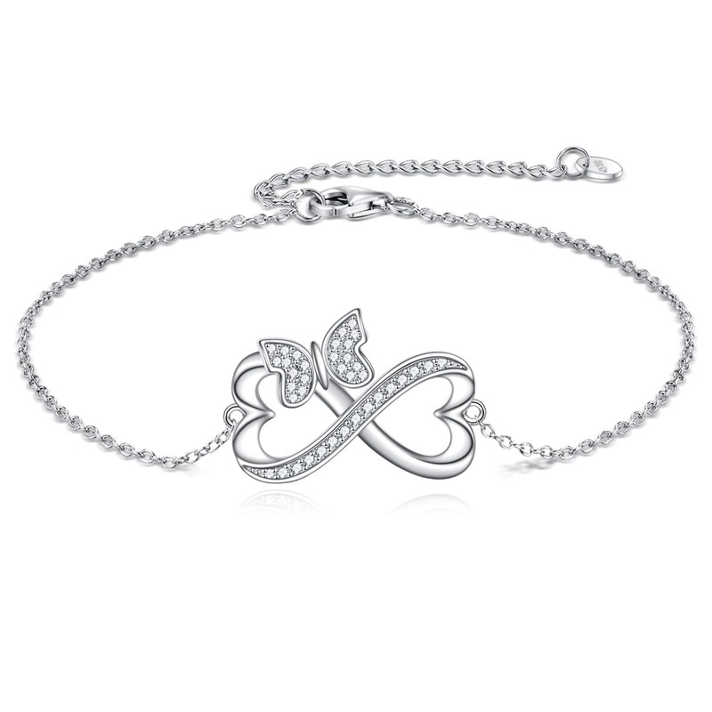 URONE Infinity Bracelet for Women 925 Sterling Silver Heart Infinity Butterfly Bracelet Infinity Jewelry Gift