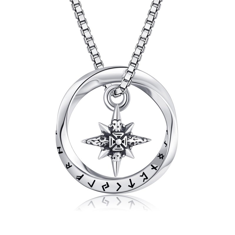 - Design:The Mobius Twisted Ring Necklace features Nordic 24 Alphabet Runes Symbols and a compass. The Norse 24 Viking runes symbolize magic and aid the wearer in finding their path when lost. Whether navigating a physical storm or facing challenges in life, this ring necklace acts as a guiding beacon to lead you back home