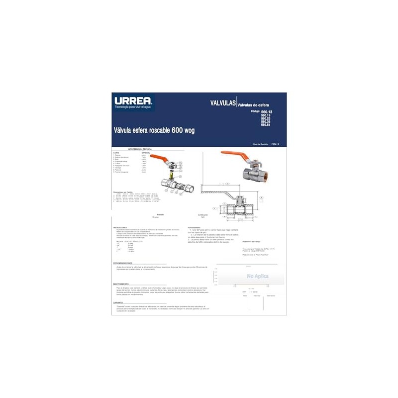 - Presión: Presión de trabajo 600 W.O.G. es una presión recomendada para casa habitación, oficina o un local comercial. Temperatura de trabajo de -20°C a 110°C.