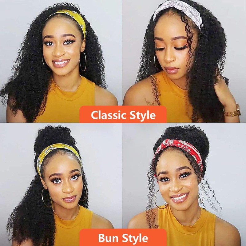 - 150% Density , Full, Thick , Bouncy, Soft. Keep Style for a Long Time ; Wet and Wavy Headband Wig ( kinky curly) is Full Machine Made , No Glue , No Lace, New Upgrade Headband Scarf Wig Give a Natural Looking, It Can Be Restyled as You Like