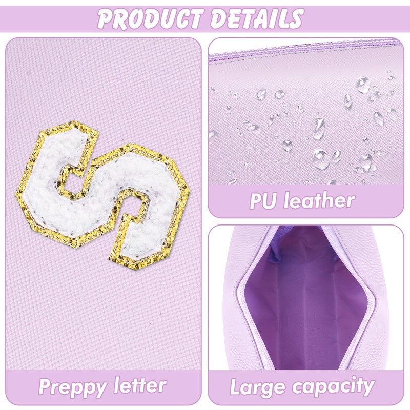 - Peso ligero y excelente mano de obra: la bolsa de maquillaje inicial está hecha de piel sintética suave y es cómoda, suave y ligera. La bolsa de maquillaje se pliega cuando no está en uso y cabe en una bolsa grande sin ocupar espacio. El tirador de cierre de metal mantiene tus artículos seguros y organizados en el interior. Bolsa de letras de chenilla para mujeres y niñas