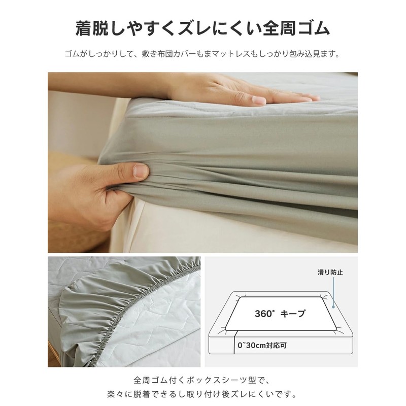 - (3-in-1) Waterproof sheets, bed pads, and fitted sheets combine together for easy use. Filled with a moderate amount of filling for a soft and comfortable sleep. Thicker than standard fitted sheets, these padded fitted sheets offer softness and resilience. (Rubber Type Around the Entire Circumference) Comes with 360° rubber, so you can easily put it on just by putting it on. It is compatible with up to 11.8 inches (30 cm) thick, so it can be firmly fixed to your mattress/futon, and it won't shift easily even if you have a bad sleep position, so you can sleep soundly until the morning