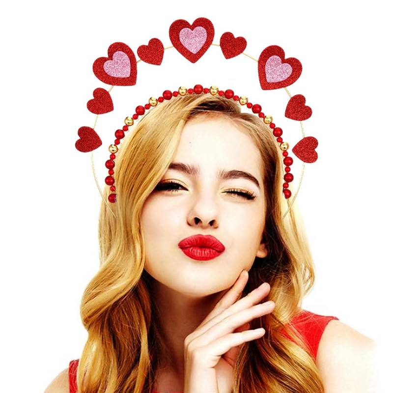 - Valentine's Day headband is made of shiny heart-shaped and bead beads, with lightweight material and comfortable wearing