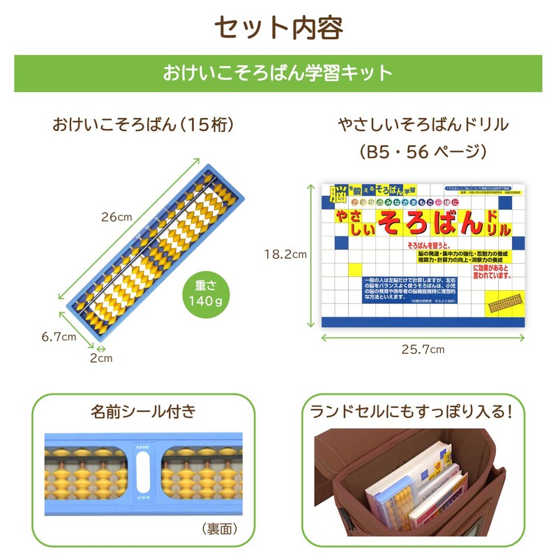 - Set Contents: Okeshiroban x 1, gentle abacus drill x 1
