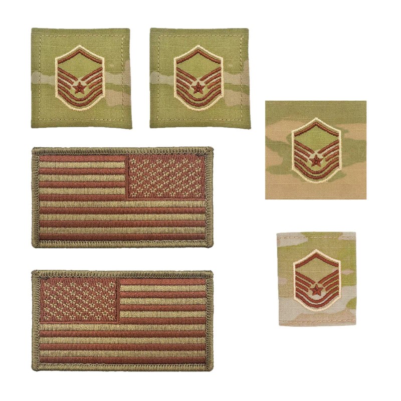 US Air Force Master Sergeant Rank with Spice Brown OCP Flag patches bundle