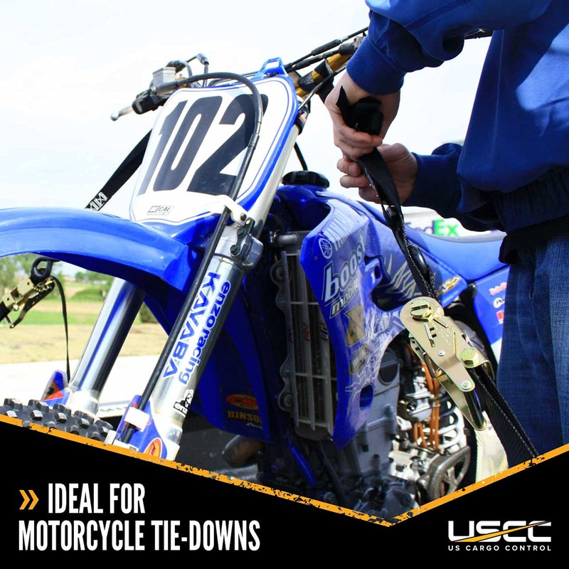 - VERSATILE - Use our 1 inch ratchet straps to quickly and safely secure motorcycles, dirt bikes, ATVs, garden tractors, and more to your truck, van, or trailer.