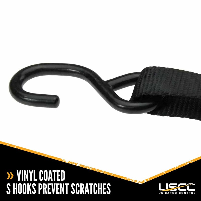 US Cargo Control 1 Inch X 10 Foot Ratchet Strap with S-Hooks, Use As Motorcycle Tie Down Straps, Works Great with L Track Tie Downs, Secure Motorcycles, Dirt Bikes, ATVs, and More, 4 Pack