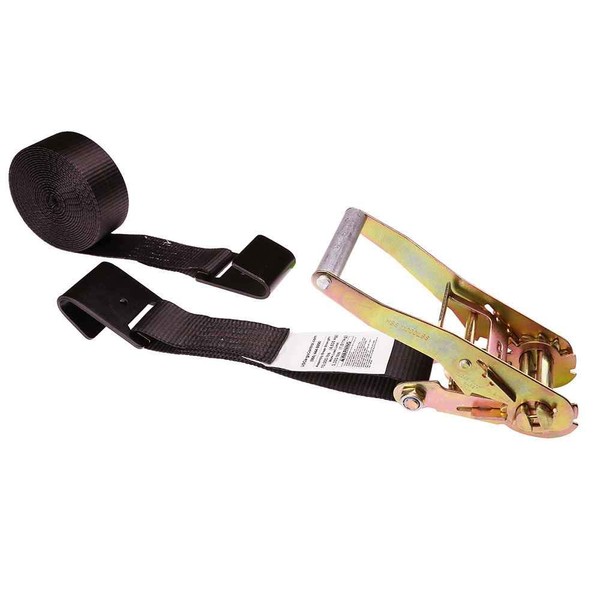 US Cargo Control 2 Inch x 30 Foot Black Ratchet Strap with Black Flat Hooks