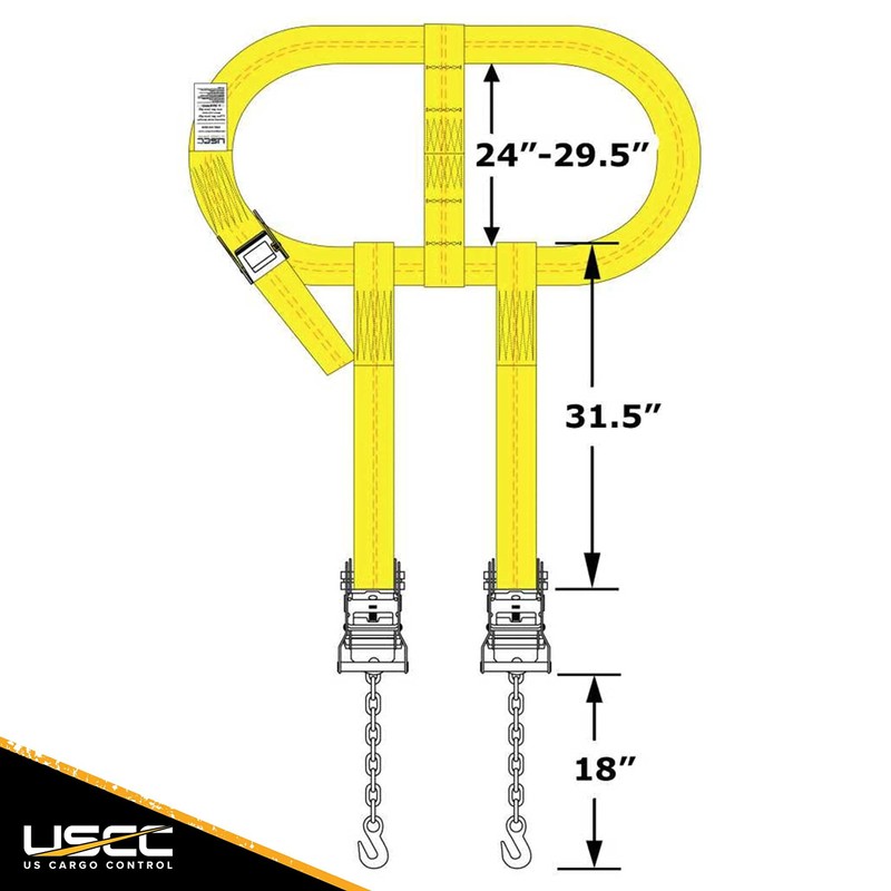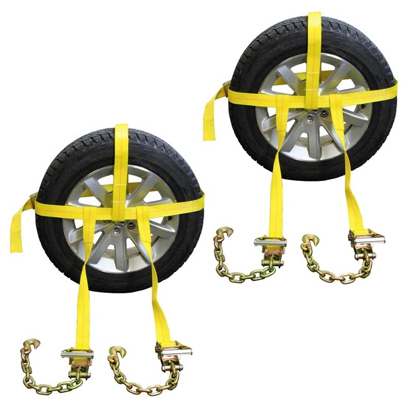 - SPECS - Side Mount Wheel Net with Cam Buckle and Two Ratchets and Chain Extensions | Color: Yellow | Strap Width: 2 Inches | Top Strap Length: 35 Inches | Working Load Limit: 1,000 lbs. | Product Weight: 11 pounds each| Quantity: 2 Wheel Straps