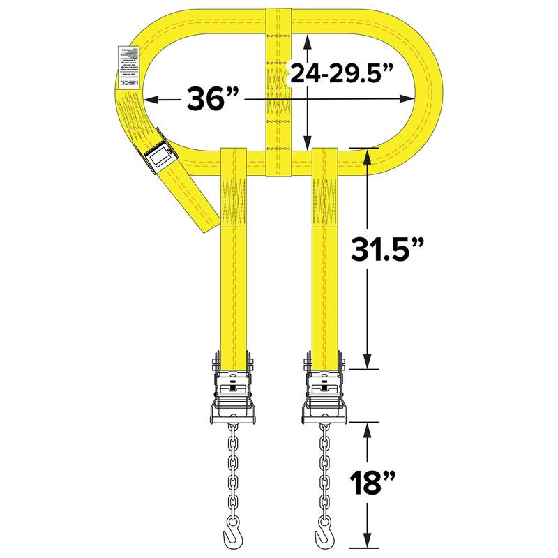 • SPECS - Side Mount Wheel Net with Cam Buckle and Two Ratchets and Chain Extensions | Color: Yellow | Strap Width: 2 Inches | Top Strap Length: 35 Inches | Working Load Limit: 1,000 lbs. | Product Weight: 11 pounds | Quantity: 1 Wheel Strap