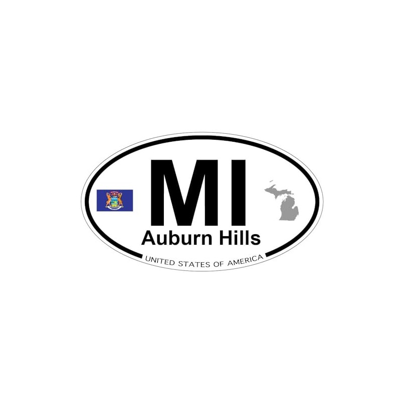 US Decal, Inc. Auburn Hills, Michigan Oval Sticker with State Flag