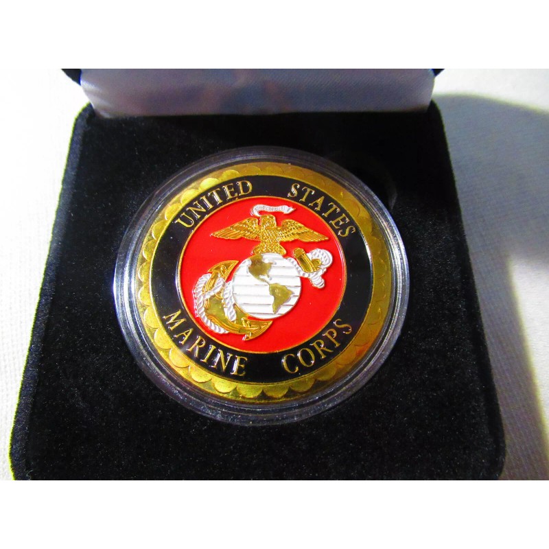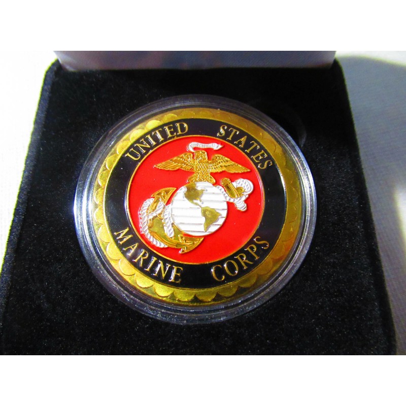 This is a great looking US MARINE CORPS 3rd MARINE DIVISION commemorative challenge coin. Coin is about 1 9/16" in diameter. This coin has the 3rd Marine Div. patch on the front while the reverse side has a great looking white & gold Marine Corps raised emblem on a red, black & gold background. Coin is contained in an acrylic air tight holder and displayed in an attractive black velvet presentation box which will make this a very impressive gift.