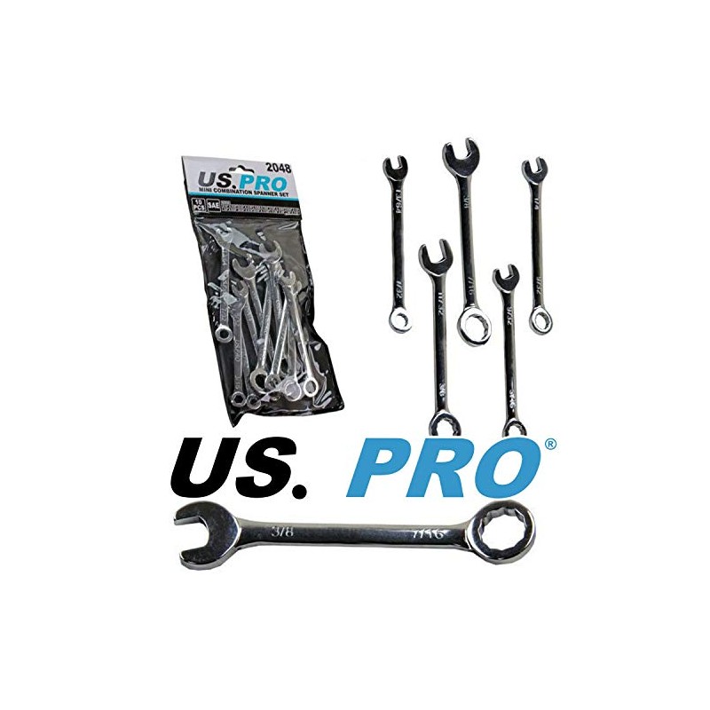 US PRO 2048 10 Piece SAE/Imperial Mini Combination Spanner Set, Silver