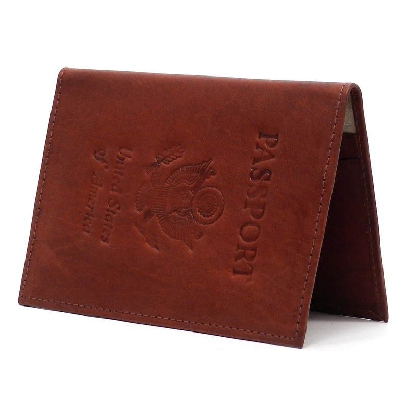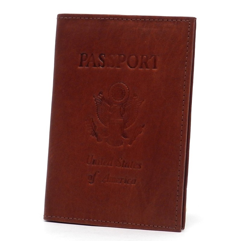 Us Seal Embossed Genuine Leather USA Passport Cover Holder Travel Wallet (Brown)