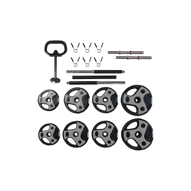 - Modern and Practical Design: Crafted with sleek grey and black high-density plastic components, this weight set combines durability and style, enhancing any home gym space.
