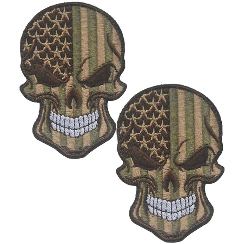 USA American Flag Patches Skull Patches Hook and Loop Tactical Morale Applique Fastener Military Embroidered Patch 2Pcs (USA 1)