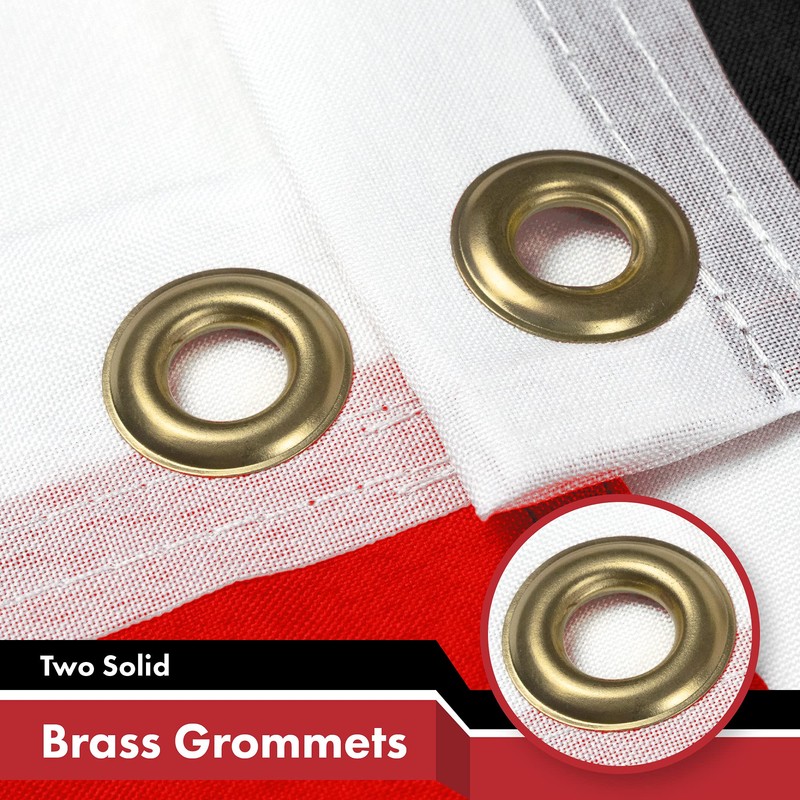 - Fly ends are secured with FOUR rows of lock stitching to prevent ripping and tearing. Heavy duty polyester canvas heading with two strong solid brass grommets for easy hanging and display.