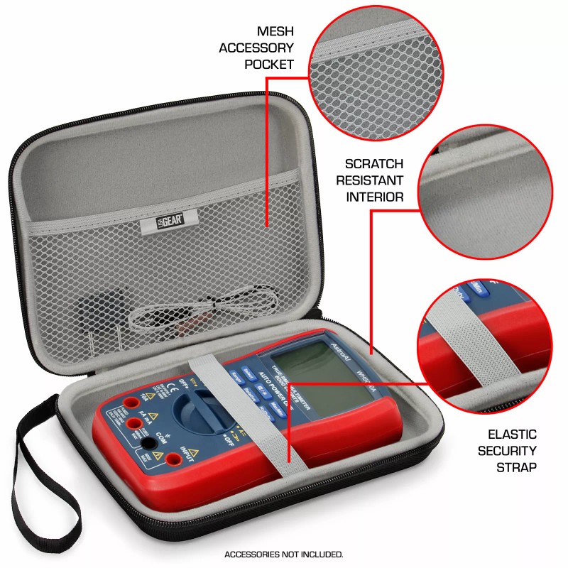 USA GEAR Hard Protective Digital Multimeter Travel Case with Storage for Prob...