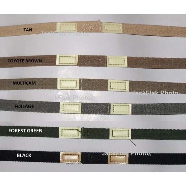 This sale is for one (1) New Production shown in photos Elastic Helmet Band with glow tabs also known as "cat eyes" (Sale for Band only, no Helmets included). Band can be reversed inwards if glow tabs are not desired USA Made by disabled American Citizens for our Military. Absolutely not a cheap Import See arrows showing it on helmets in photos. Note shades of color may vary from your monitor or display These will fit on many helmets such as PASGT, M1, and other similar helmets Absolutely New production, stored in a Pet and Smoke Free environment | |||