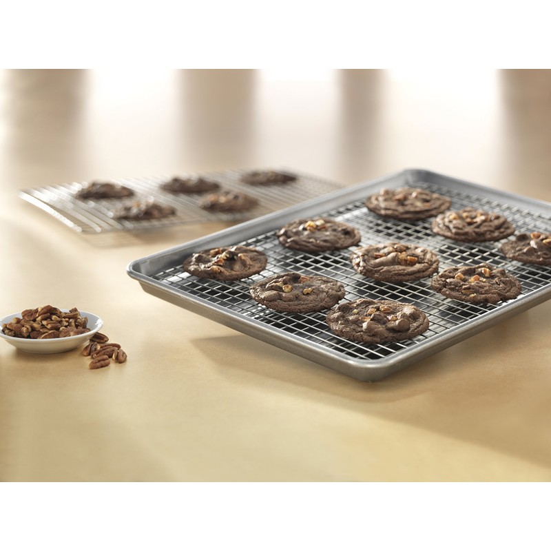 • Classic half sheet pan and cooling rack for baking cookies and cakes or roasting vegetables; both are oven safe up to 450 degrees Fahrenheit