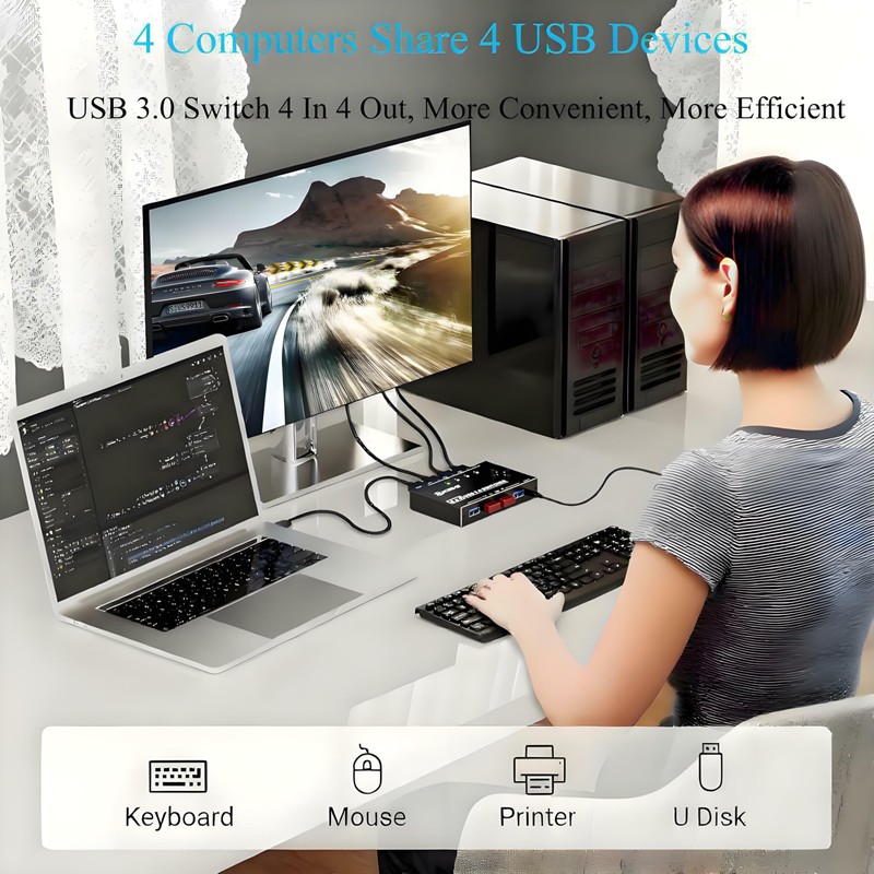 USB 3.0 Switch 4 port for 4 computers share 4 USB devices of keyboard mouse printer and so on