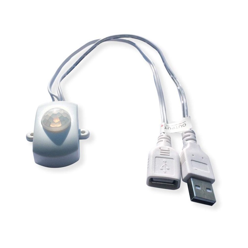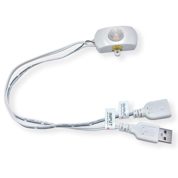 USB 5V DC12-24V 2A PIR Motion Activated Mini Body PIR Sensor Switch with USB Interface Cable for LED Strip Automatic Light Security Camera Pet Monitoring (Without Light Sensor, White)