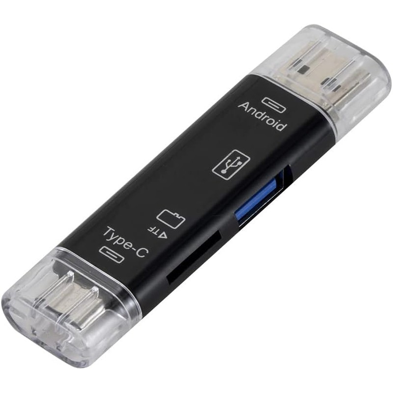 USB Adapter Micro SD Card, 5 in 1 Portable Memory Card Reader USB C/Micro/USB 2.0 Adapter USB OTG for Micro SD Card, Compatible with MacBook Computer, Android Phone