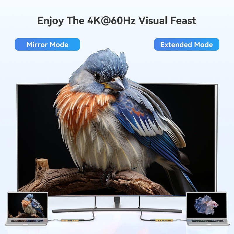 - Enjoy Crystal-Clear 4K@60Hz Video: MacBook Pro Adapter mirrors or extend your screen with USB C hub’s HDMI port and directly stream 4K UHD @60Hz video to HDTV, monitor or projector to see all in sharp and glorious detail, perfect for photographer and video editor