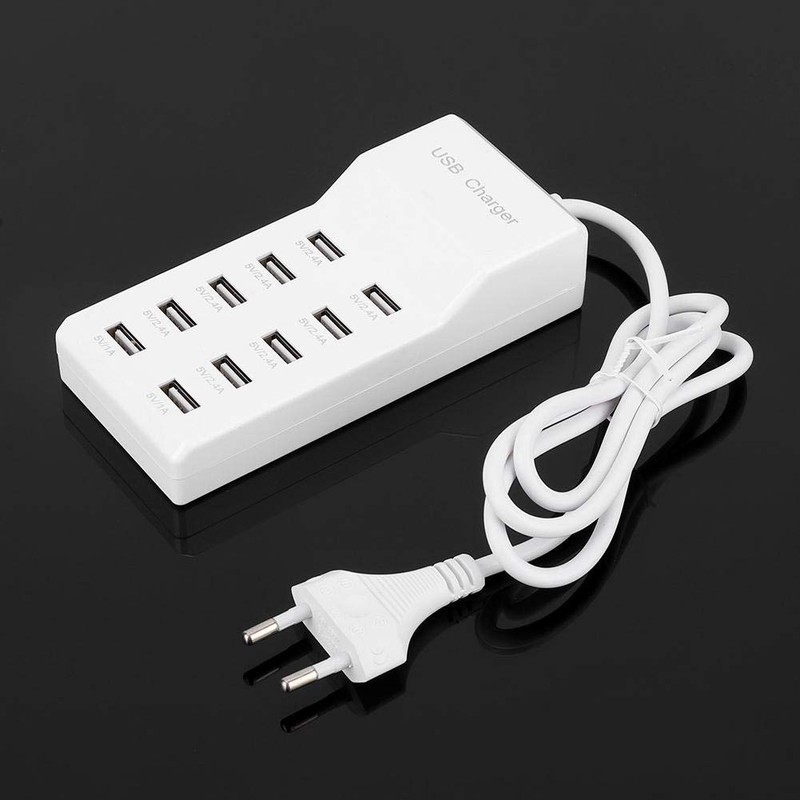 USB Charger 10 USB Charging Station with Ports 100-240 V USB Hub Power Strip for Devices Xs/Max/XR/X/8/7/Plus Pro Tablet Reusable Packaging (EU)