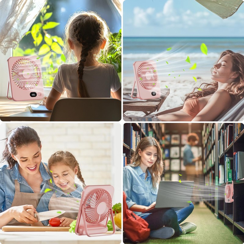 - 【Rechargeable Small Desk Fan】Equipped with a built-in, high-capacity 3600 mAh rechargeable battery, it can be charged via a USB-C port. The fan's runtime ranges from 4 to 10 hours, depending on the selected wind speed. Desktop fan aesthetic design resembles a small piece of art, providing a cool breeze, adorning your desk, Ideal for use in the library, office, study desk, bedroom, kitchen, during camping, traveling, or long working hours, it ensures you enjoy coolness and comfort.