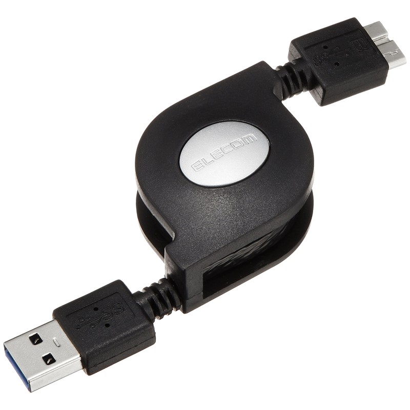 エレコム USBケーブル 【microB】 USB3.0 (USB A オス to microB オス) 巻き取り 0.7m ブラック USB3-AMBRL07BK
