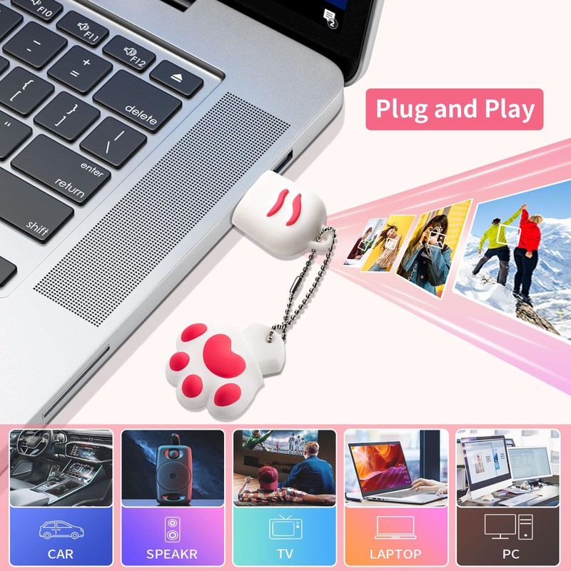 - Unique shape: USB stick cartoon cat paw design, mini and lightweight, does not take up much space, can be carried as a storage assistant, is the best choice for office travel, convenience for your life.