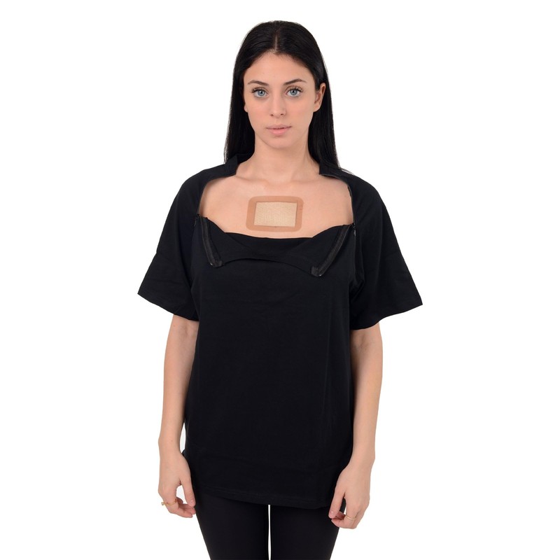 USBD Premium Port Access Chemo Tshirt Recovery Dual Access Tee Side Open Shirt (Large, Black/Women)