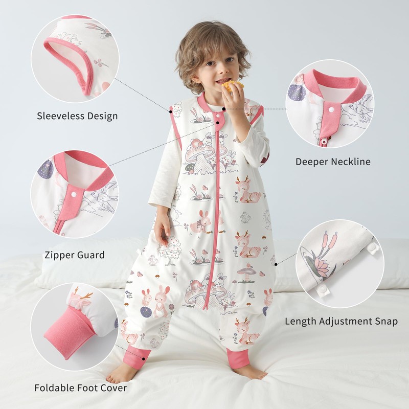 - For Early Walkers: usbettas toddler sleep sack provides the freedom of movement during sleep while ensuring warmth and security. The feet design allows for natural movement, making it perfect for active babies and toddlers who enjoy crawling, walking, and playing. The sleeveless design and 2.5 tog rating keep your baby warm while also reducing the risk of overheating;