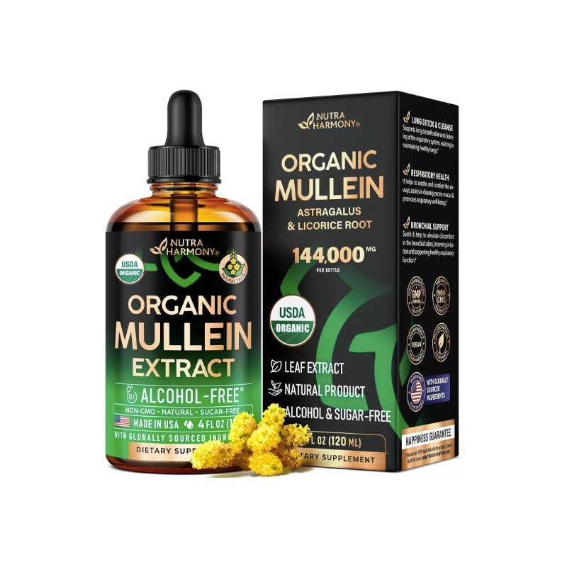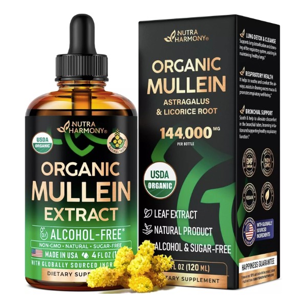USDA Organic Mullein Drops for Lungs - Mullein Leaf & Licorice Extract Supple