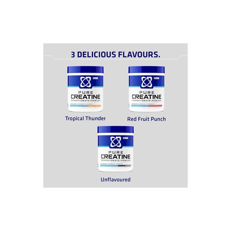 • NEW flavoured options: USN Creatine is available both as creatine monohydrate powder flavoured and creatine monohydrate powder unflavoured. Add it with juice, smoothies or your daily protein shake.